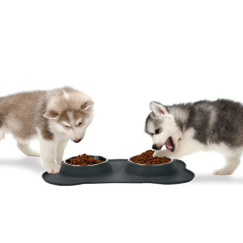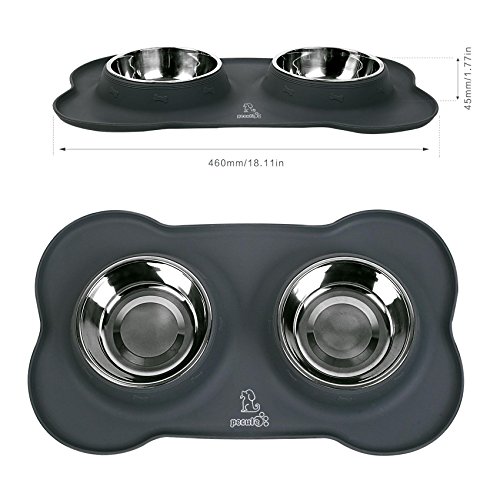 Studio : Pecute Publisher : Pecute Binding : Misc. Product Description Smart Designed New Dinner Set for your lovely pets! It features removable, bacteria resistant stainless steel bowls in skid-free silicone base. Raised and Curved Edges help ensure quiet, spill-free dining. Pecute Double Bowls come in solid gray color and neat design to match any home decor.