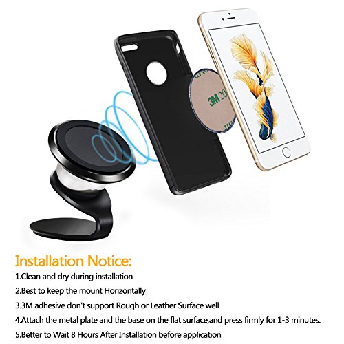 - 360 Degree Rotation: This car phone mount magnetic holder has a unique design of 360 degree rotation which allows you to adjust your phone to any desired angle, so you can always keep your phone fully in view. It is compact and practical.