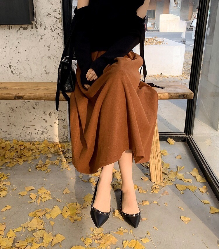 落ち着いたカラーが上品で大人っぽい雰囲気の膝丈フレアスカートです。