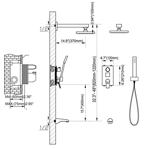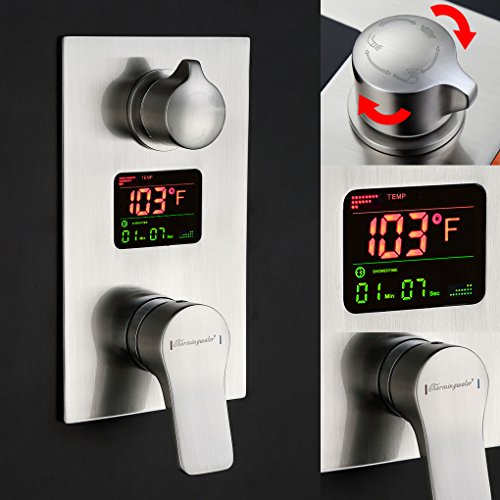 LED Digital Display: Luxury bathroom shower system shows water temperature in Fahrenheit & bath time, Offering you the best water temperature for your family. This shower is for new construction or remodel.