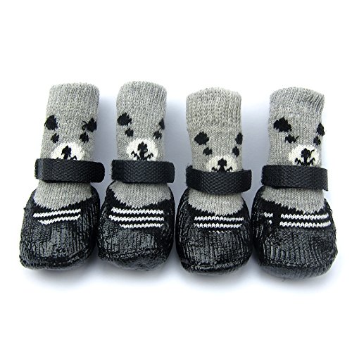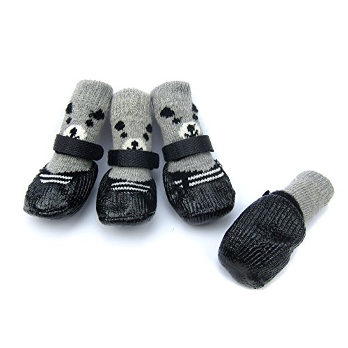 -. Binding : Misc. -. Brand : Alfie -. Feature : Measures 1.25" long, 1.25" wide and 2.75" high. / Complete your dog's outfit with these rockin' socks. / Feature non-skid soles and a detachable velcro loop closure strap / Great protection for those hot summer walks or cold winter outings. / Try one on your doggie today! -. Label : Alfie -. Manufacturer : Alfie -. MPN : AC-CharliePetSocks-Black-S -. PackageQuantity : 1 -. PartNumber : AC-CharliePetSocks-Black-S -. ProductGroup : Pet Products -. ProductTypeName : PET_SUPPLIES -. Publisher : Alfie -. Studio : Alfie -. Title : Alfie Pet by Petoga Couture - Charlie Set of 4 Rubber Dipped Dog Paw Protection Socks - Color: Black, Size: Small