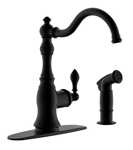 Derengge KF-6832-MT 8" Single Handle Kitchen Faucet with Side Spray,2 Hole or 4 Hole Installation,Meets cUPC NSF61-9 and AB1953 Lead Free Standard,Matte Black Finished