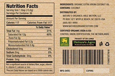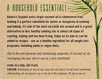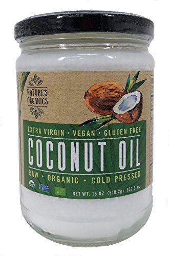 Nature's Organics Raw Organic Cold Pressed Extra Virgin Coconut Oil 532.2ML (18oz) glass jar