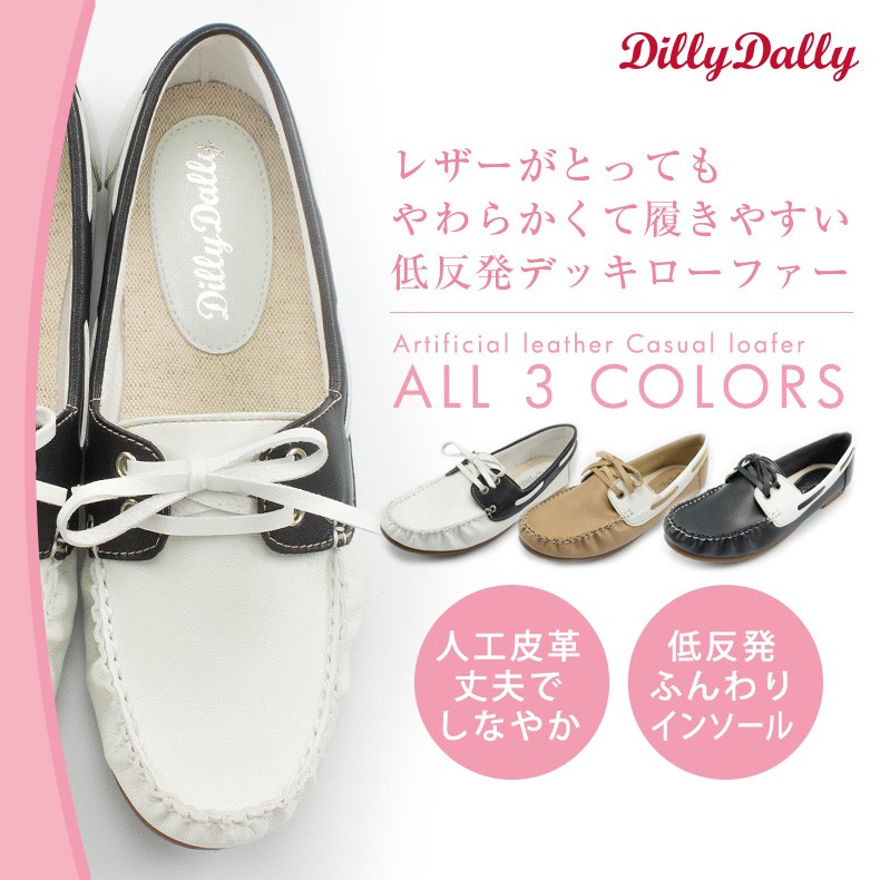 | ポイント | 【7,560円以上送料無料】 【あすつく可/メール便不可】 ◆Dilly Dally 柔らかフェイクレザー デッキシューズ 3カラー◆ オリジナルブランド『Dilly Dally』のデッキシューズ。 とっても柔らかく、丈夫でしなやかな高級人工皮革を使用。 履き心地の良さは足入れから体感できます。 低反発インソールで足当たりが良く、痛くなりにくくなっており 安定した歩行をサポートしてくれます。 | |||||