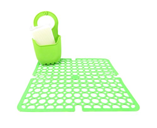 THE SPECIFICS: Bundle of 2 items with vibrant colors to brighten up any kitchen. The neon green sink mat is made of PVC and measures 10 7/8” x10 7/8”, while the neon green sponge holder is made of silicone and measures 7 3/4” x 4 1/2”. Sponge is for demonstration purposes and not included.