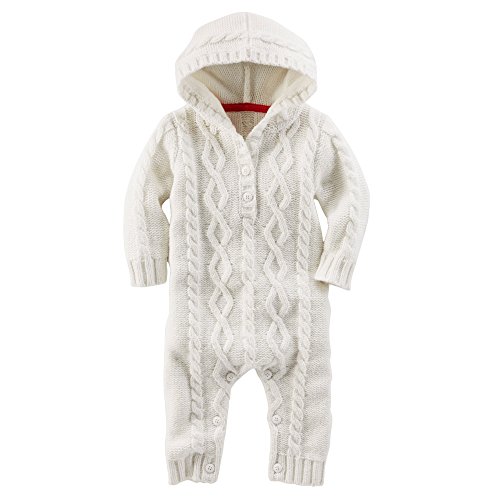 In classic ivory and hooded for warmth, this heavy-knit 1-piece keeps cold weather at bay.