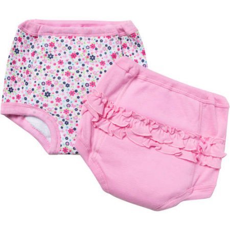 Studio : Gerber Clothing Publisher : Gerber Clothing Binding : Baby Product Product Description Gerber toddler girl cotton training pants with terry and PEVA liner are ideal for toddlers who want to feel like theyre wearing big kid pants while potty training and used when accidents are less frequent. These toddler girl training pants have a 100 percent cotton body for breathability and the terry and peva lining provides enough absorbency to hold little leaks on the way to the potty. Gerber training pants for girls are designed for her to easily pull up down and have a covered elastic waistband for all day comfort. The rhumba ruffle on the seat adds extra cuteness. Durable, washable and reusable for multiple uses.