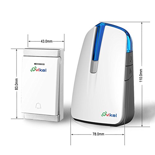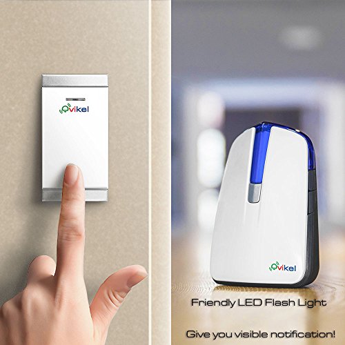 Ovikel Wireless Battery Operated Doorbell, with LED Flash, 32 Melodies for Choose, Battery Operated receiver, Self-powered Bell Push IP44 Waterproof, Operating at 500ft Range