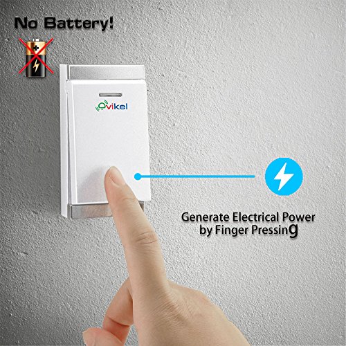 - KINETIC PUSH BUTTON without need for batteries,generates energy to create a wireless signal by finger pressing. Never miss a visitor because of a dead battery. With an IP44 waterproof rating, our transmitter is weather-resistant for all climates