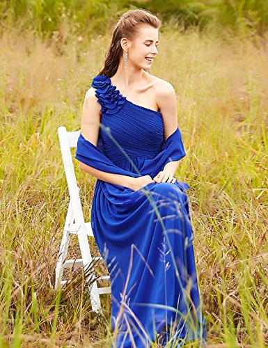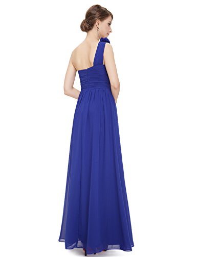 One shoulder long party dress. Padded enough for "no bra" option. Stylish hand-made flower decorates the single shoulder. Unique ruched bust creates an elegant silhouette. Simple and fashion design. Concealed zipper up the back. Lining, no stretchFeature
