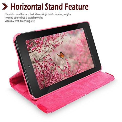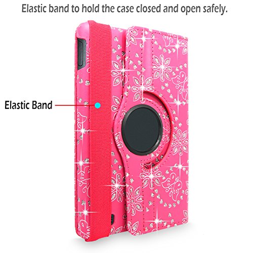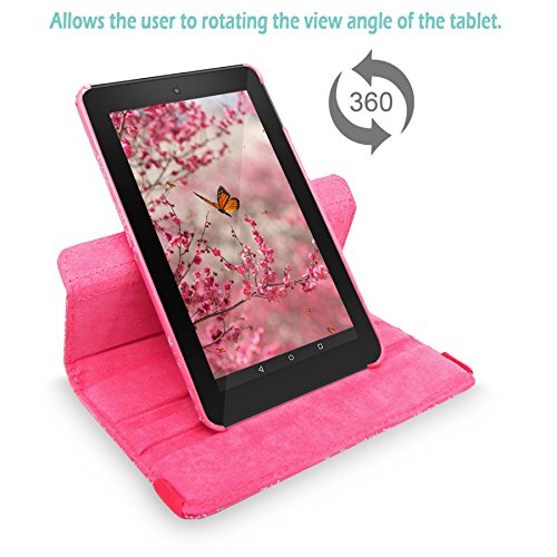 Fire 7 2015 Case, Cellularvilla [Multi-angle] Premium PU Leather 360 Degree Rotating Flip Cover Swivel Stand Protector Case for Amazon Kindle Fire 7 inch Tablet 2015 5th Generation (Pink Glitter)