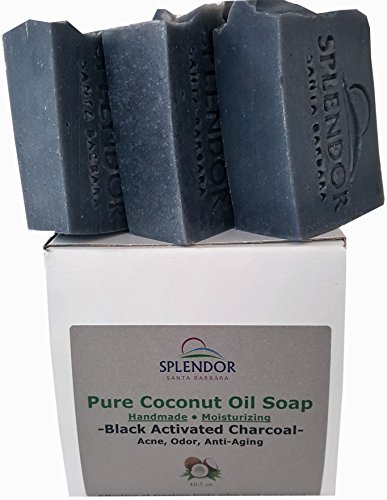 -. Feature : 25% MORE SOAP THAN OTHER HANDMADE BRANDS- 10.5 OZ ( 3/3.5oz bars ) OF 100% PURE MOISTURIZING COCONUT OIL SOAP This formula has A RICH CREAMY LATHER and is anti-bacterial, anti-viral, antifungal. / ACTIVATED CHARCOAL DETOX: Did you know that activated charcoal can absorb over 500-times its weight in impurities? This super-duty ingredient helps draw out impurities from your pores / ANTI-AGING, TOXINS, ODOR, BUG BITES, ACNE- activated charcoal is know to help a multitide of skin problems. / NATURAL HEALING- Our proP.R.Ietary home recipe is handmade in small batches in Santa Barbara, CA USA Vegan with Food-grade coconut oil, No Palm oil, No Alcohol, No Parabens, No Sulfates, No Soy, No GMO's, Gluten-Free, No Phthalates, Not tested on animals, No plastic and No Artificial colors. / CONVENIENCE- Great for guest, hotel use and travel. Takes care of the whole family and TSA-friendly, great to give as a gift in our attractive glossy recyclable box