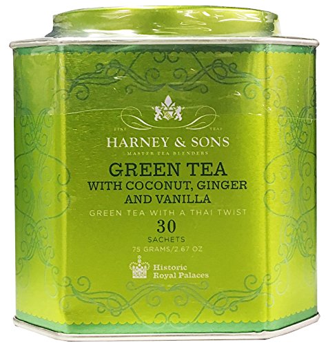 Harney and Sons Green Tea with Coconut Ginger Vanilla 30 Sachets Tin 2.67 Ounce
