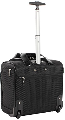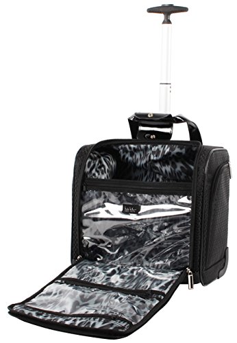 -. Brand : Nicole Miller -. Color : Black -. Department : unisex-adult -. Feature : High density poly / Fully lined interior / Telescopic push button handle system / Kristina line / Fits under the seat and serves as a carry on -. PackageQuantity : 1 -. ProductGroup : Apparel -. ProductTypeName : LAGE -. Title : Nicole Miller New York Kristina Collection 15" Under Seat Bag