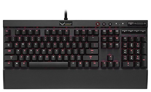 -. Feature : Cherry MX Red Mechanical Switches - Smooth, linear key response for ultra fast double and triple taps without the audible click / Key-by-Key Customizable Backlighting - Deep red LEDs with adjustable brightness and per key programmability to light up just the keys you need. Save the combination for your favorite game directly to the keyboard / Contoured, Textured WASD Keycaps - Keep your eyes on the action with easy to locate FPS keys / Anodized Black Brushed Aluminum Chassis - Professional-Grade look and feel plus the red durability needed for hours of gaming / 100% Anti-Ghosting with 104 Key Roll-over on USB - Every keystroke translates into accurate game play / Detachable full length wrist rest - Soft touch design that's comfortable for hours of play and easy to remove if it gets in your way