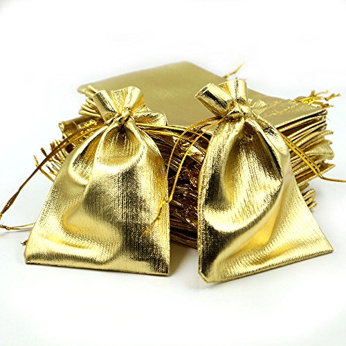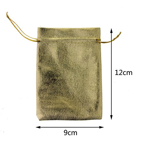 YUTIAN 100pcs Drawstring Organza Pouch Jewelry Wedding Favor Candy Bag Packing Gold 9X12 Centimeter