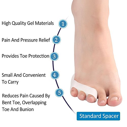 Studio : P-JING Publisher : P-JING Binding : Health and Beauty Product Description What do functions you can get in P-JING product? Buy one set, you can get all Bunion Corrector Toe Separator Set. Gel Pad Bunion Protector Sleeves Toe Separator with Bunion Guard Standard Toe Spacer , Provide all protect both backs and bottoms of feet and toe How can I use it ? Easy to use, just need to put it to your toe according to the shape of feet. Needn't to help for others. you can wear it to walk, work, or relax. Nobody knows it , you needn't feel shamed ,do what you want to do Why are we different from others? Top customer service --12 months guarantee We have much confident that you will deeply love it . If you don't like our product suddenly, we offer a 30-day money back guarantee hassle free Superior soft flexible gel: -- Soft touch sensitive skin Flexible cover bunion, can reduce irritation, friction and sweat between the toes when wearing shoes. You never worry bout blisters in your foot Humanized design-idealized toe's protective Human foot structure designs the stomata and the anti-skid line, allowing your feet to breathe freely and the whole day is anti-skid No bunion surgery--Same therapeutic effect Toe separators can save you time and money and reduce pain. After the bunion postoperative recovery, toe pads help to keep toes in the right position after bunion surgery. Warm tips: *If wear at night to sleep, please put on socks in case toe separators sliding or falling. * If gel become tacky, sprinkle with talcum powder or corn flou