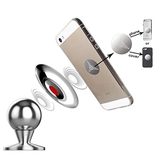 EASY AND SECURE- uses the neodymium magnets to secure your mobile safely in place. Simply attach the slim plate to the center of your phone or case , adhere the cell phone car mount to your dashboard with 3M adhesive pad. and let magnetic power do the rest.