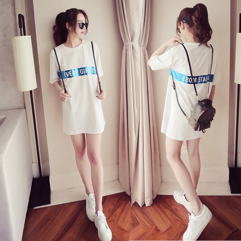 孕妇T恤短袖中长款夏装韩国光感字母宽松连衣裙春季纯棉休闲上衣