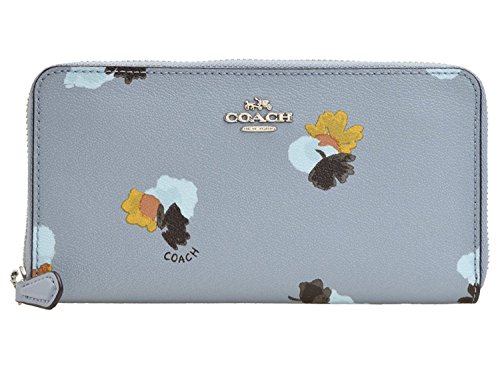 ACCORDION ZIP WALLET IN FIELD FLORA PRINT COATED CANVAS (COACH F86859) SILVER/CORNFLOWER Details Printed coated canvas Twelve credit card slots Full-length bill compartments Zip coin pocket Zip-around closure 7 1/2" (L) x 4" (H) Fits all phone sizes up to an iPhone 7 Plus and Samsung S7 Edge