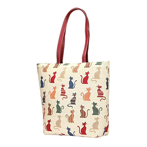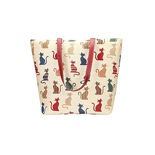 Cat Design Women's Tapestry Shoulder Tote Handbags by Signare