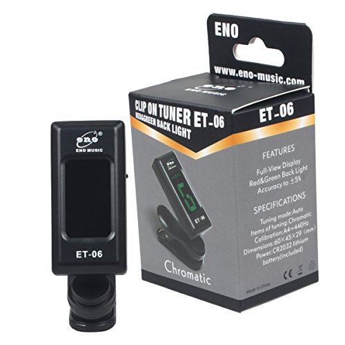 The Eno ET-06 Mini Clip on Digital Tuner is a great way for you to tune either your guitar, bass, violin or ukulele