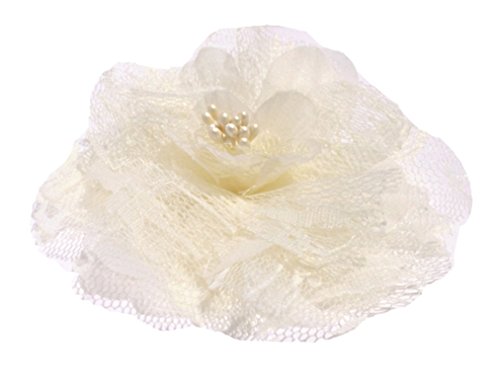 Cuteque International Victorian Lace Rose with Plastic Center Pearl Stamens, 4-Inch, Antique White, 3-Pack