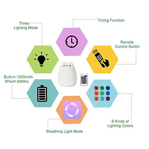 Umiwe Remote Control Cat Lamp, Cute Silicone Kitty Night Light for Kids Baby Children Nursery Toddler Birthday Gift (Celebrity Cat)