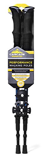 Studio : Cascade Mountain Tech Publisher : Cascade Mountain Tech Binding : Sports Product Description The Cascade Mountain Tech hiking , walking , trekking poles are made from light weight "aircraft grade" aluminum and are an incredible value. Each pole can be extended to any length from 25.75 to 54 inches in length. The poles extend by turn locking system and each pole has measuring on the middle section for easy adjustment to your preferred height on every trip. They also have a durable tungsten carbide tip hidden under the rubber tip at the bottom for trekking on more rocky and uneven terrain. Each pole also come with an optional mud disk for year round enjoyment OR for use on softer ground coverings so the poles won't sink. Each stick contains an anti shock spring located in the upper section of each pole for more comfortable walking. They also have very comfortable EVA foam grip with a 5 inch down grip. The wrist straps are extremely comfortable, adjustable and includes reflective wrists straps for increased low light/nighttime safety. We also include a storage clip for easier packing and storage of these poles. specifications ? Poles extend from 25.75" to 54" (approx.)? ? Poles include one set of rubber tips ?? Includes one set of snow baskets ? ? Includes one set mud disks to prevent pole from sinking in soft surfaces ?? Anti-shock spring in pole to lessen impact ? Twist locking system? ? Wrist straps with reflective wrists straps for increased low light/nighttime safety for added support? ? Weighs Approx. 18.58 ounces (pair) Anti-shock spring in pole to lessen impact ? Great for regular walks, leisurely hiking or adventurous treks?? A great addition to your hiking gear! 0