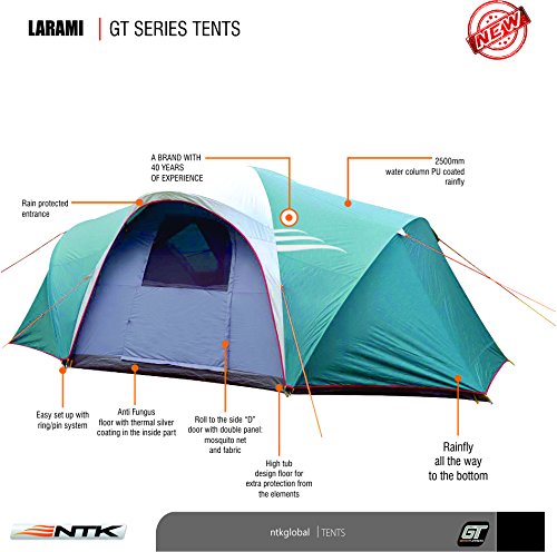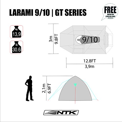 NTK LARAMI GT Tent up to 10 Persons, 10 by 13FT by 6.9FT Height, 3 Season Camping 100% Waterproof 2500mm, Best Seller Deluxe Family Extra Large Car Hunting