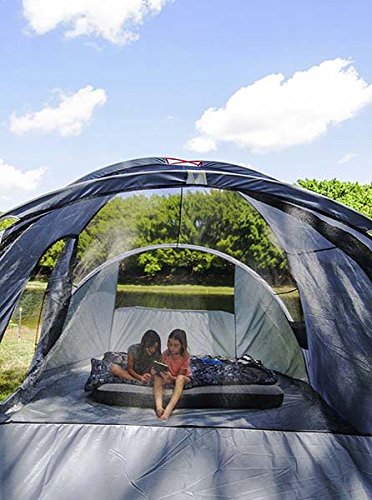 THE ULTIMATE FAMILY CAMPING EXPERIENCE! SUPER SPACIOUS 9 to 10 Person (adult/kids) tent, detachable room divider, 1 Super large Door Tent Designed for Easy Assembly. Super 6.9 FT height for maximum comfort. NEW ONE YEAR CELEBRATION FREE PROMO GIFT INCLUDED: LED STORM STRETCH LIGHT WITH BATTERY VALUED AT USD14.99.