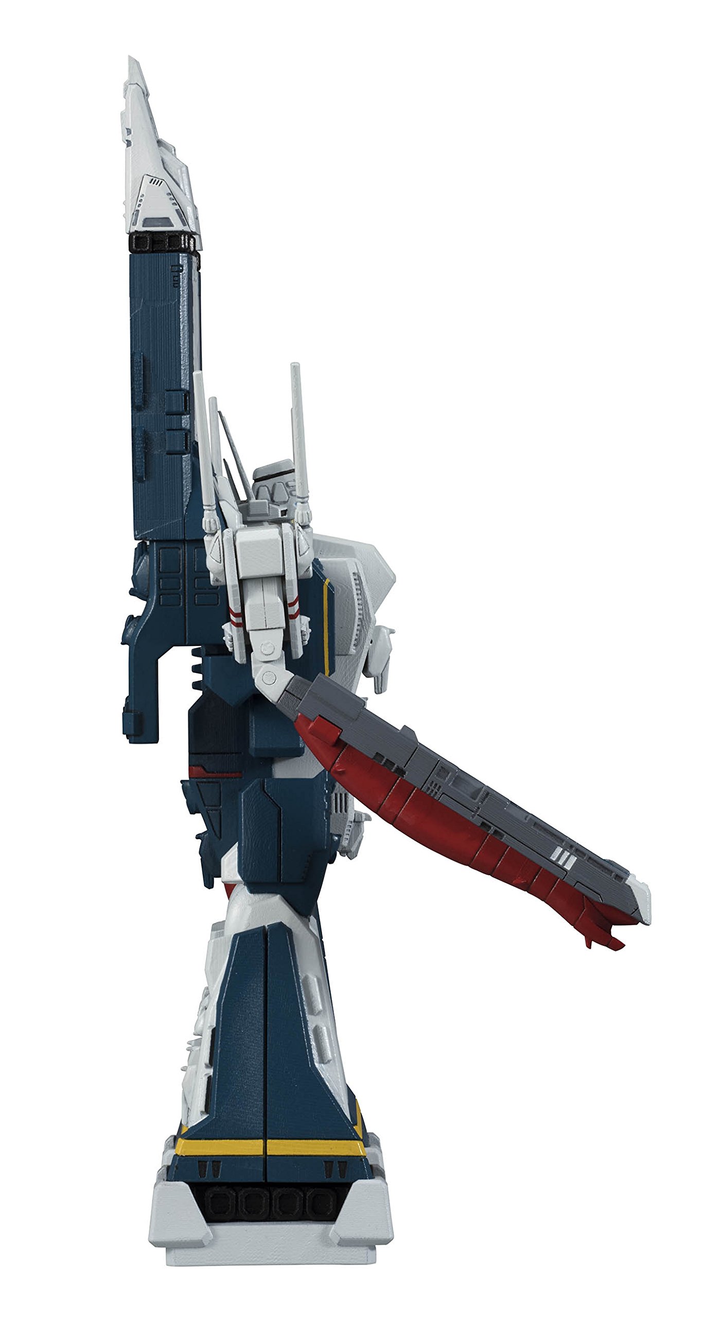 The proportion is also good and I can express the atmosphere of the TV version Macross well with the minimum necessary mold. The strong type is an atmosphere similar to the 1/8000 Plamo of the former Imai company, and it seems that if the company had released 1/8000 fortress ship when watching the fortress ship, it would make me feel like it was such feeling. Regarding transformation deformation, it is easy to do except for the points where the legs are difficult to pull out during fortress → battle, and the main gun slide slightly interfere with the main gun on the shoulder top. Rotary axis moving parts (2 places) of each block of the main gun have no inrush inside, and position adjustment is necessary when it is a bumpy type. Daedalus front hatch on the back side with subtle lightening, Prometheus screws are exposed only on the right side of the rear side, upper part of the legs at the time of bullying (closely attached at the time of the fortress ship) As if I forgot the opening, the white crotch axis inside is full. Daedalus, the bridge of Prometheus has been completely abbreviated. Since the movable shaft by caulking and the pinching rotation axis are concentrated from the shoulder to the elbow, Daedalus and Prometheus may not be beautifully horizontal with respect to the macross body at the time of a fortress ship due to individual differences. The bridge part of the burglar type and the fortress ship was slightly tilted to the left or right to be bonded to the right or left (I put a lot of effort on picking with the fingers, but since it was easy to disengage, I reattached at the best position ). The movable part of the elbow from the shoulder is a thin part, but the caulking treatment has been done to two places and it looks like it is visible so it looks a little disappointing in appearance. Although the metal tube of the caulking is slightly laid out in both the front and back, it seems that the joint strength will not be kept if it is easy to flatten. Although the ankle moves for the ground or moves to the left and right, it does not move forward and backward, the knees are not movable, the crotch opens only at the left and right and does not open in the character of Ha. Since the display pedestal has a diameter of 12 cm, the tiny one may get in the way a bit. Regarding coloring, unique color navigation blue color other than the unique color scheme of the TV version has been reproduced. Personally I wrote a lot of satisfied TV version of Macross, than the thing which is not perfect deformation, the joyfulness that the TV version was commercialized surprised and it bought two for each form.I am satisfied because I wanted a nostalgic TV version. Daedalus Attack can be put in it with this.