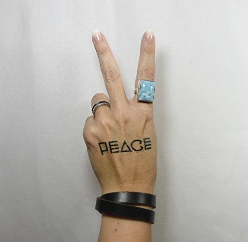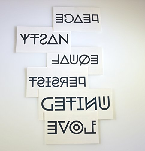 - Tattoo sizes - LOVE = 1" x 2", UNITED = 1" x 2.75", EQUAL = 1" x 2.25", PERSIST = 1" x 2.75", NASTY = 1" x 2.5", PEACE = 1" x 2.25"
