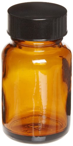 Chemglass Glass Wide Mouth Bottle with Polyseal Black Cap, Amber