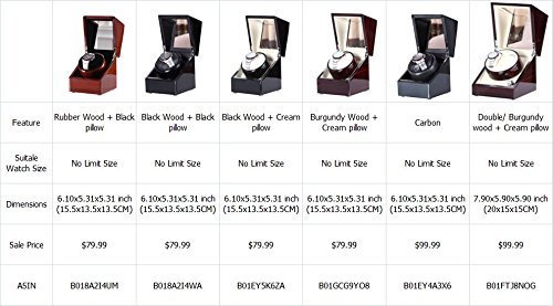 Please kindly noted that our Love NeQuiet Motor: MABUCHI Belt Driven motor system which is extremely quiet and long lasting, running with no noise. Winds one watch at a time. The pillow is adjustable to fit different-sized watches.st logo is not on winder, it is on our carton packing.