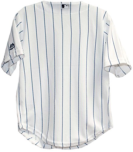 -. Binding : Misc. -. Brand : Majestic Athletic -. Color : White pinstripe -. Department : baby-boys -. Feature : Applique front logo / Made of lightweight, breathable Cool Base material / Made by Majestic / Officially licensed by the MLB / Blank back--NO PLAYER NAME -. Label : Majestic -. Manufacturer : Majestic -. PackageQuantity : 1 -. ProductGroup : Sports -. ProductTypeName : SPORTING_GOODS -. Publisher : Majestic -. Studio : Majestic -. Title : New York Yankees 2015 Home Pinstripe Cool Base Toddler Jersey