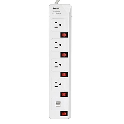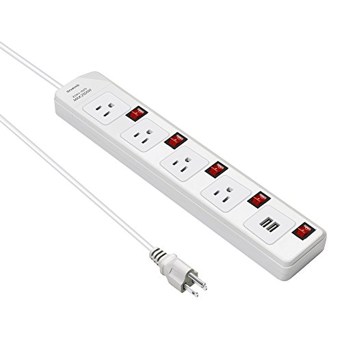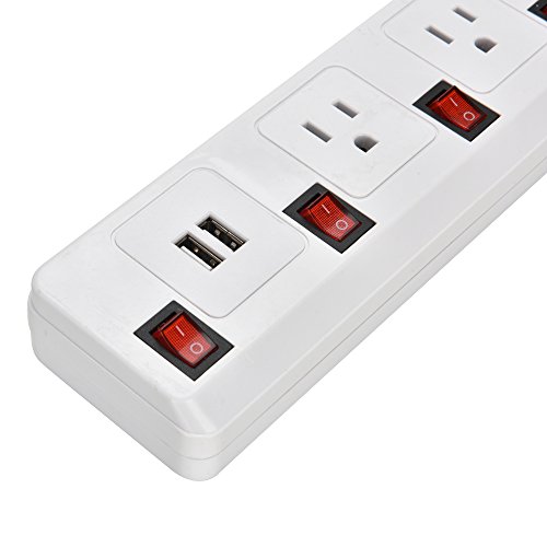 iTrustech™ 4-Outlet Individual Switches 6.6-Foot Heavy Duty Power Cord Extension Cords with 2 USB Charging Ports Power Strip Surge Protector Charging Station [6.6ft Cord, 4AC, 2 USB] (White)
