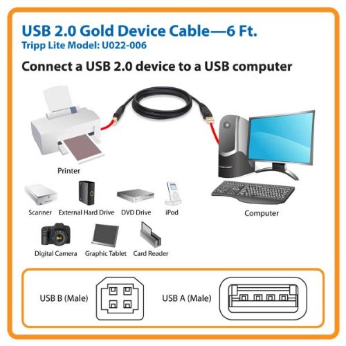 Tripp Lite U022-006 USB 2.0 Certified Gold (A Male to B Male) Device Cable - 6ft