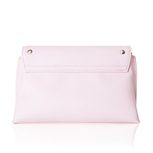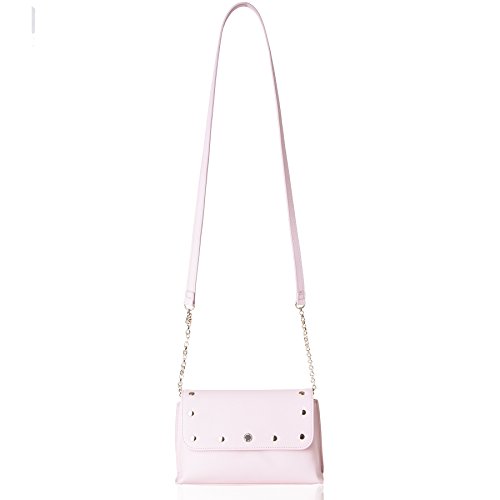 Stud around flap. Magnetic shap closure. Cross body strap. Inside zipped pocket. Logo stud