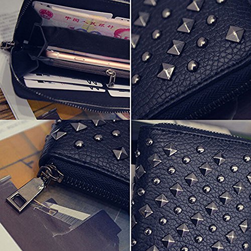 -. Brand : Sanwood -. Color : black -. Department : womens -. Feature : Material: Faux Leather / Size(H x W x T): 10cm x 19cm x 2cm/3.93" x 7.48" x 0.79" (Approx.) / You can use it to storage your card, money and phone in. / Revit decor makes this bag shiny and attractive. Best choice for date, shopping, party and so on. / You still can put your lipstick into it. -. ProductGroup : Shoes -. ProductTypeName : HANDBAG -. Title : Sanwood Faux Leather Cool Fashion Women Punk Style Spike Handbag Rivet Studded Long Wallet Phone Bag