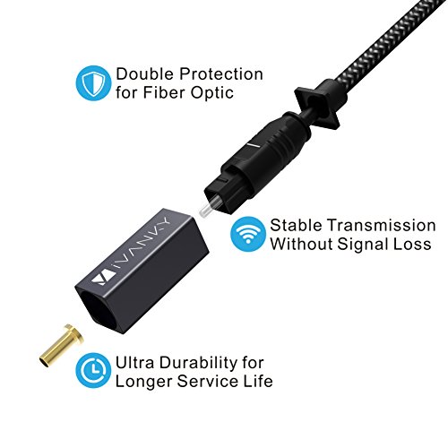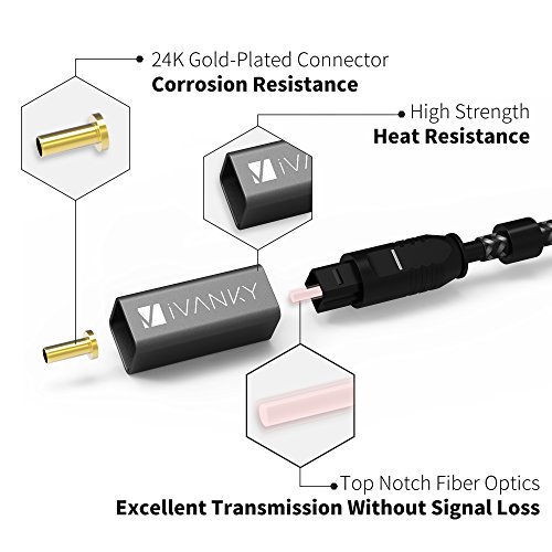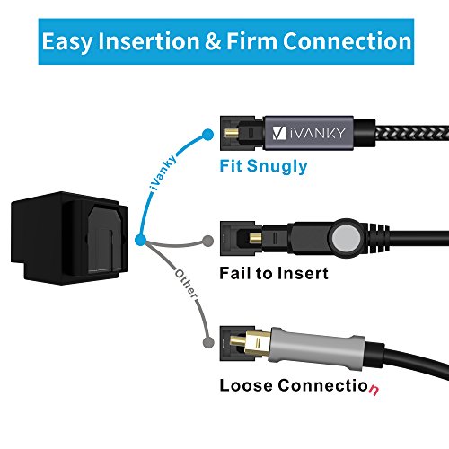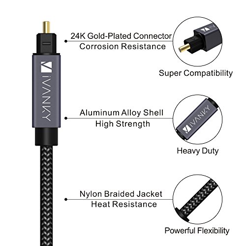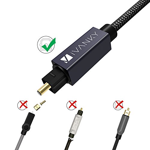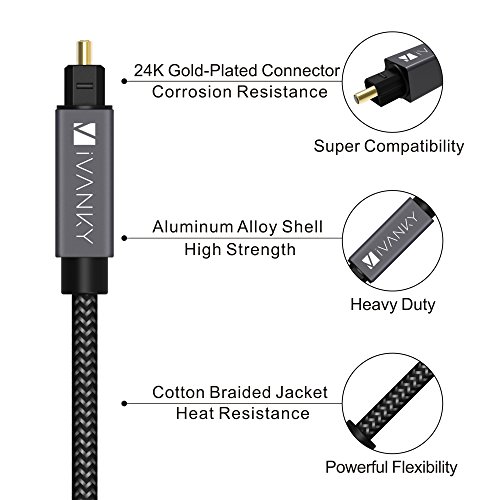 ? iVanky Optical Cable with aluminum alloy shell is specially designed to last long. Get this iVanky Optical Digital Audio Cable to achieve full immersion into your favorite music, movies, video games and more. ? The high density quality nylon braided jacket has undergone a fatigue test of tension, bending, sway and so on and has been proven to be suitable for your usage. It is characterized by heat resistance, anti-friction, anti-corrosion, oil resistance, acid alkali resistance and good flexibility.