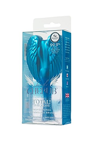 -. Binding : Health and Beauty -. Brand : Tangle Angel -. Color : Metallic Turquoise -. EAN : 5060236421128 -. Feature : Anti static properties prevent flyaway hair leaving it smooth and silky. / Heat Resistant bristles retain their shape even when used with the high temperatures generated by hairdryers. / The Contoured Base retains full bristle height with no reduction in performance once hair is detangled. -. Label : Tangle Angel -. Manufacturer : Tangle Angel -. Model : 21128 -. MPN : 21128 -. PackageQuantity : 1 -. PartNumber : 21128 -. ProductGroup : Beauty -. ProductTypeName : BEAUTY -. Publisher : Tangle Angel -. Studio : Tangle Angel -. Title : Tangle Cherub Metallic Turquoise