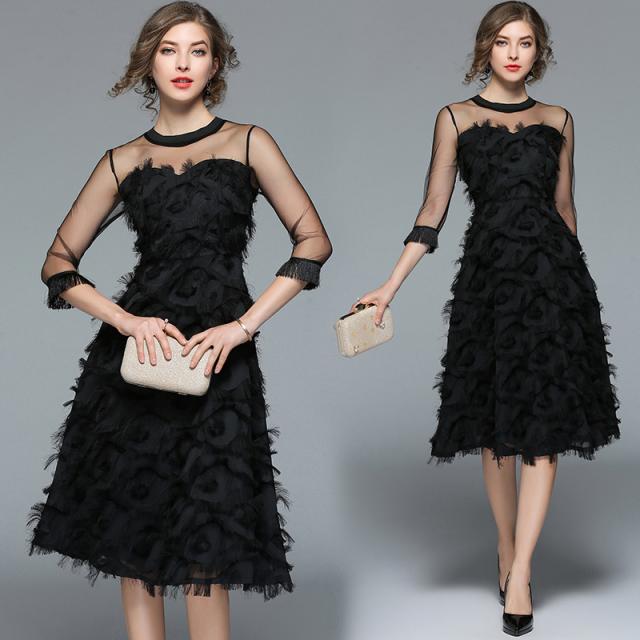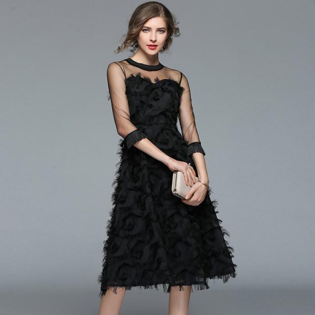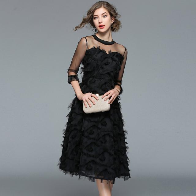 フェザーシフォン素材で袖と肩はシースルータイプ