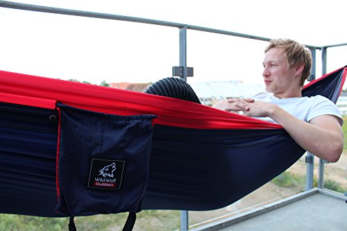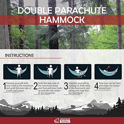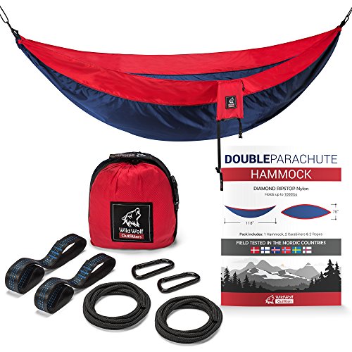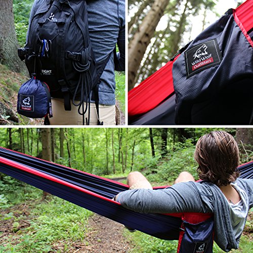 XL Double Camping Hammock by Wild Wolf Outfitters - Best Choice for Hiking, Backpacking and Outdoor Adventures - Compact, Portable Design. Our Ultralight Parachute Hammocks are Made for Nature Lovers