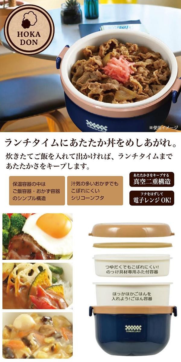 保温容器の中はご飯容器・おかず容器のシンプルなどんぶり用ランチジャー。汁気の多いおかずでもこぼれにくいシリコーンふた。 |