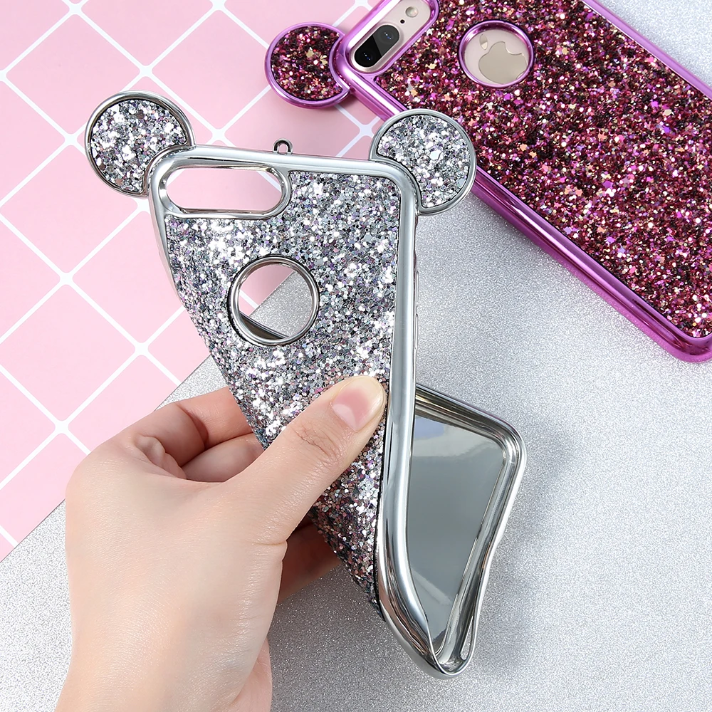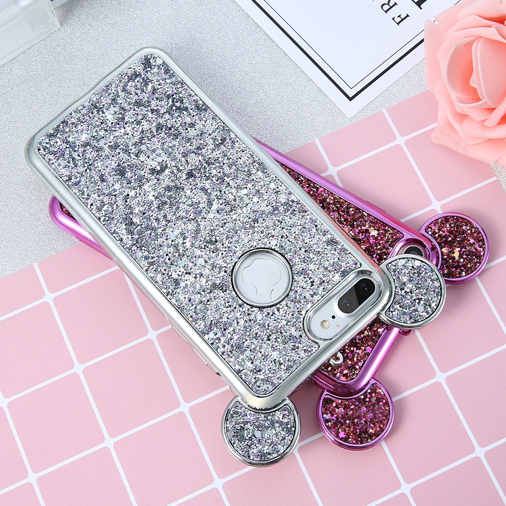Feature One: Bling Paillettes + Soft Silicone Glitter Case + Cute 3D Mickey Mouse