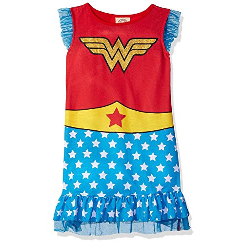 Feature : COSTUME STYLED: Sweet dreams of being Wonder Woman in this Costume-Styled Pajama Nightgown. / FUN AND FANCY! Fun, fun fun... this nighty features a fancy sleeve, and frilled hem. / FEATURES: Wonder Woman symbol in sparkle-print graphic on the front, full costume look printing, short fancy-frilled sleeves and hem. / COMFORTABLE: Tailored from 100% soft polyester for comfort and durability / WONDER WOMAN: Officially licensed DC Comics Wonder Woman sleepwear