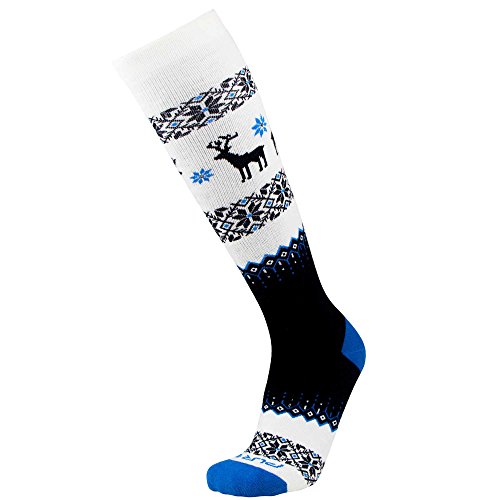 -. Feature : Medium Weight, Designed for Warmth: The ski sock is designed with special yarns to provide superior warmth and help keep body heat in the sock. The ski socks are a medium thickness to ensure a perfect fit with your ski boot. / Merino Wool = Anti-odor, Moisture Wicking: Merino wool helps not to only to keep your feet at the perfect temperature, but they also give anti-odor odor proP.R.Ieties to prevent the buildup of stink. The ski socks are also moisture wicking, keeping feet light and dry on the ski slopes. / Ski in Style: The bold deer design provides a preppy look and matches with holiday sweaters. / Over the Calf: The ski sock fits over the calf to help protect your legs from discomfort in your ski boot - knee high. The no-slip cuff at the top of the socks ensures they stay in place without digging in. / 100% Satisfaction Guarantee: We know these are the best ski socks you will ever wear. We guarantee it! If not fully satisfied for any reason, we will refund your purchase in full - no questions asked.