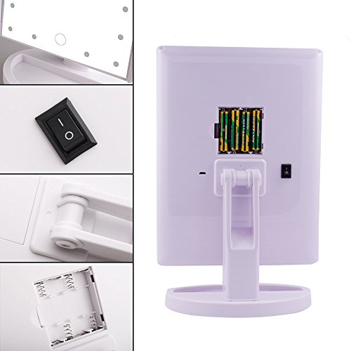 - Two Kinds of Power Supply Modes: The lighted mirror can’t store power itself, you can connect to the standard USB-port or 5v/0.7A DC wall charger or powerbank to let the vanity mirror turn on the lights; Or also can support up to 150 hours lighting with 4pcs new AAA batteries. The battery power won’t be consumed if the mirror is in the USB charging mode. (Note: the 4pcs battery are INCLUDED, not installed on mirror, please check the package.)