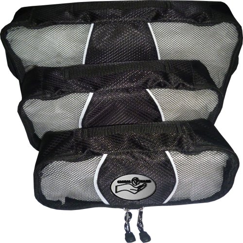 -. Feature : A Pack It Up System that makes any kinds of trips or travel fun and easy as it is to: 1.) maximize space of your suitcases or lages; 2.) organize your clothing, cosmetics & other accessories nicely; 3.) pack & unpack with comfort & convenience as you can see quickly what's inside through its "see-through" mesh fabric material of its top panel, saving you time whenever you want on the go. 4.) protect your belongings. / Must have travel accessory for family use so clothings of each child are not mixed up with others. A must have travel accessory for personal use so clean and dirty clothings are separate from each other, cosmetics are well organized or your undies, ties and socks are separate from the big ones. / Designed not only for travelling but as Personal & Family Organizer Bags as well to use as a bag to organize craft supplies, school & office supplies, make-up & other cosmetic accessories, wipes, toys & other baby accessories, socks and undies and lots more. Just think what you need to sort & organize, Global Hand Packing Cubes will do its magic. / Contains 3 pieces in one set on different sizes: 1.) Small: 13.75" * 9.75" * 4" 2.) Medium: 11" * 6.75" *3.75" 3.) Large: 10" * 4.75" * 3.75". Does not add weight on your lages as the material is very light-weight, quality diamond nylon that doesn't tear and break, mesh fabric on top panel for air ventilation and see through the contents quickly, two Nylon Zipper All Around the Bag as well as a handle on the top of each bag so you can carry it conveniently. / Cheap Introductory P.R.Ice, Save $15 and With Money-Back Guarantee!
